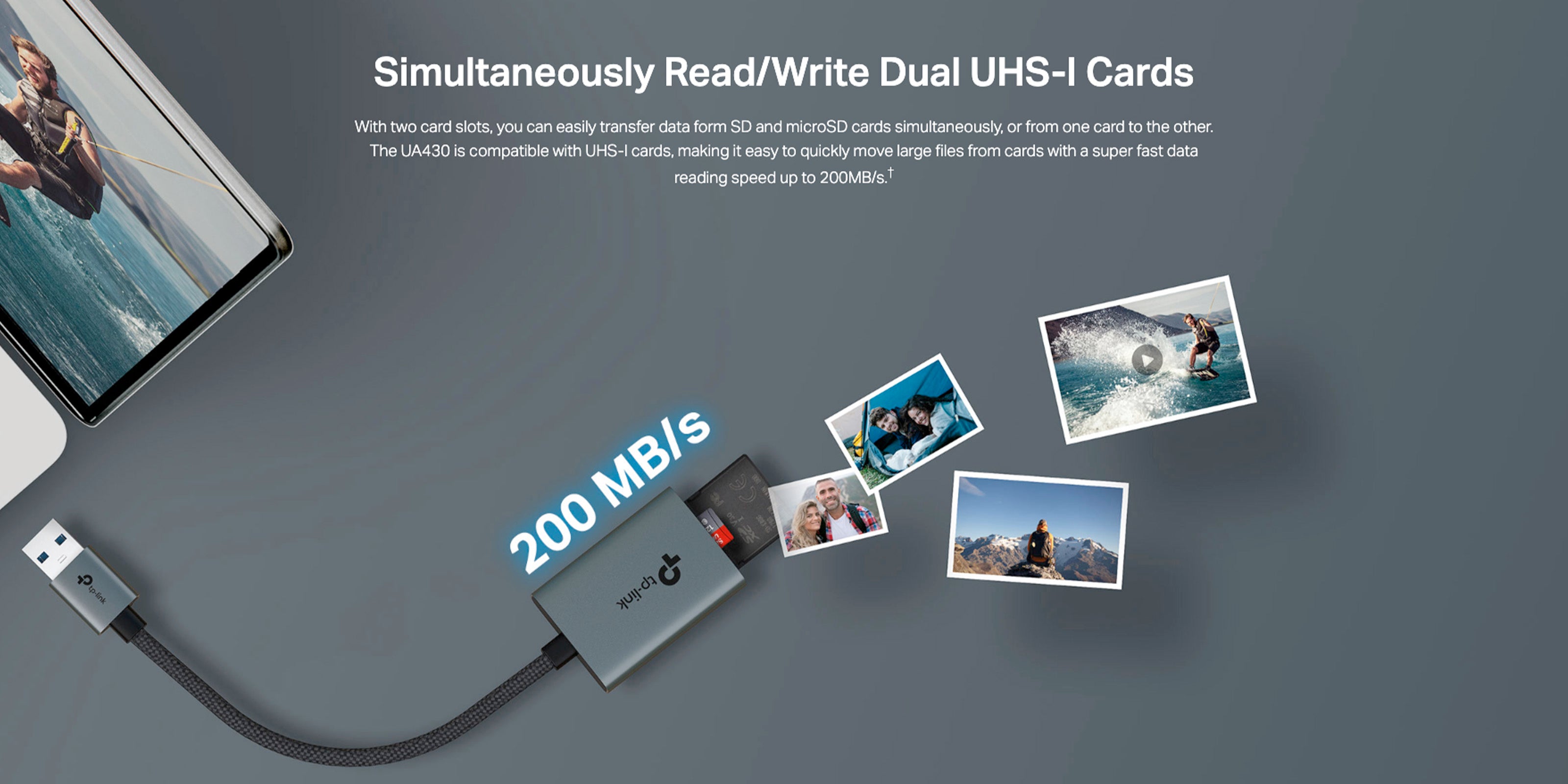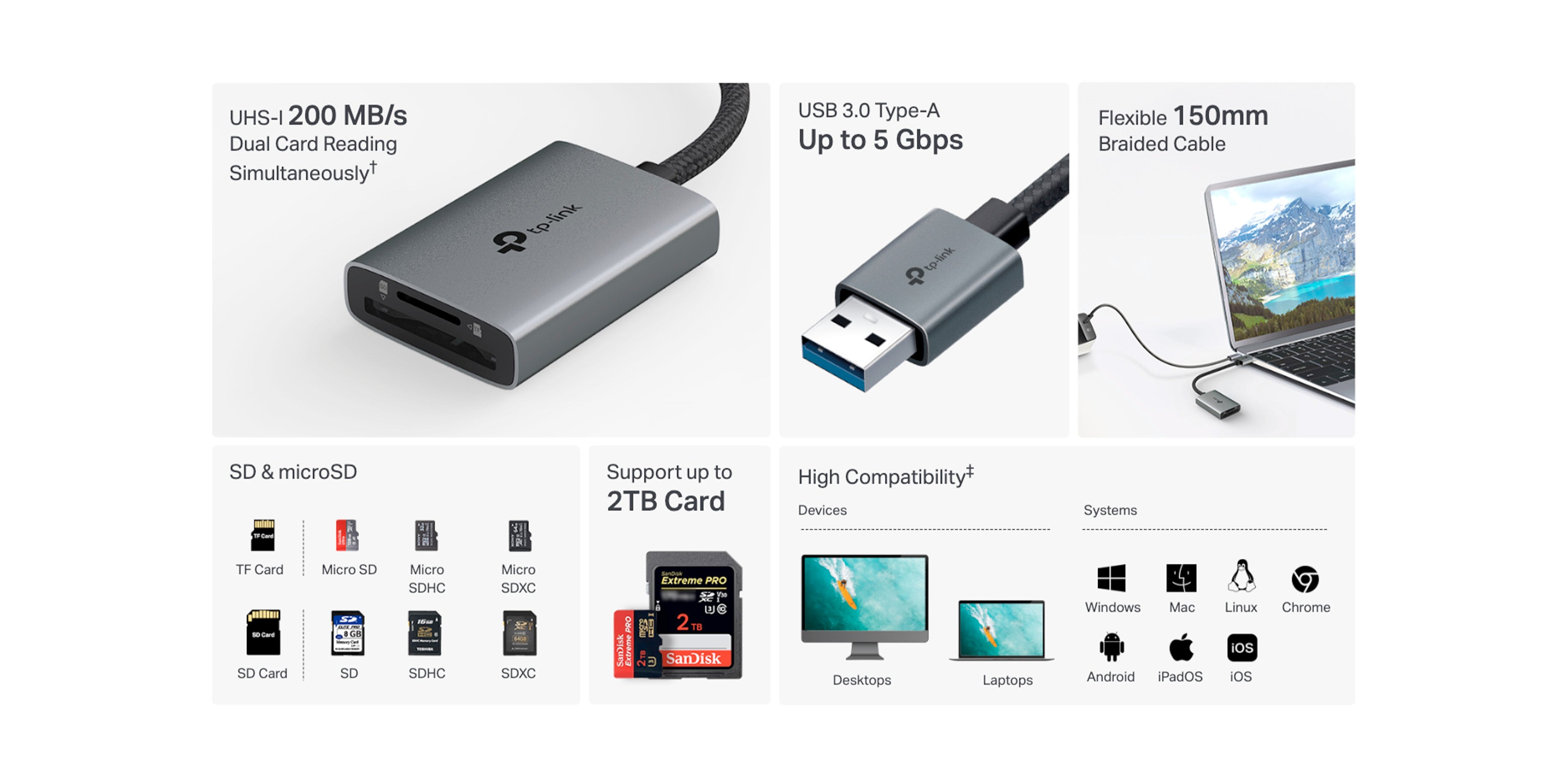 - Supports SD & microSD(TF) Card: With a SD and a microSD slots, UA430 support SD,SDHC、SDXC,microSD、microSDHC、microSDXC cards up to 2TB.
