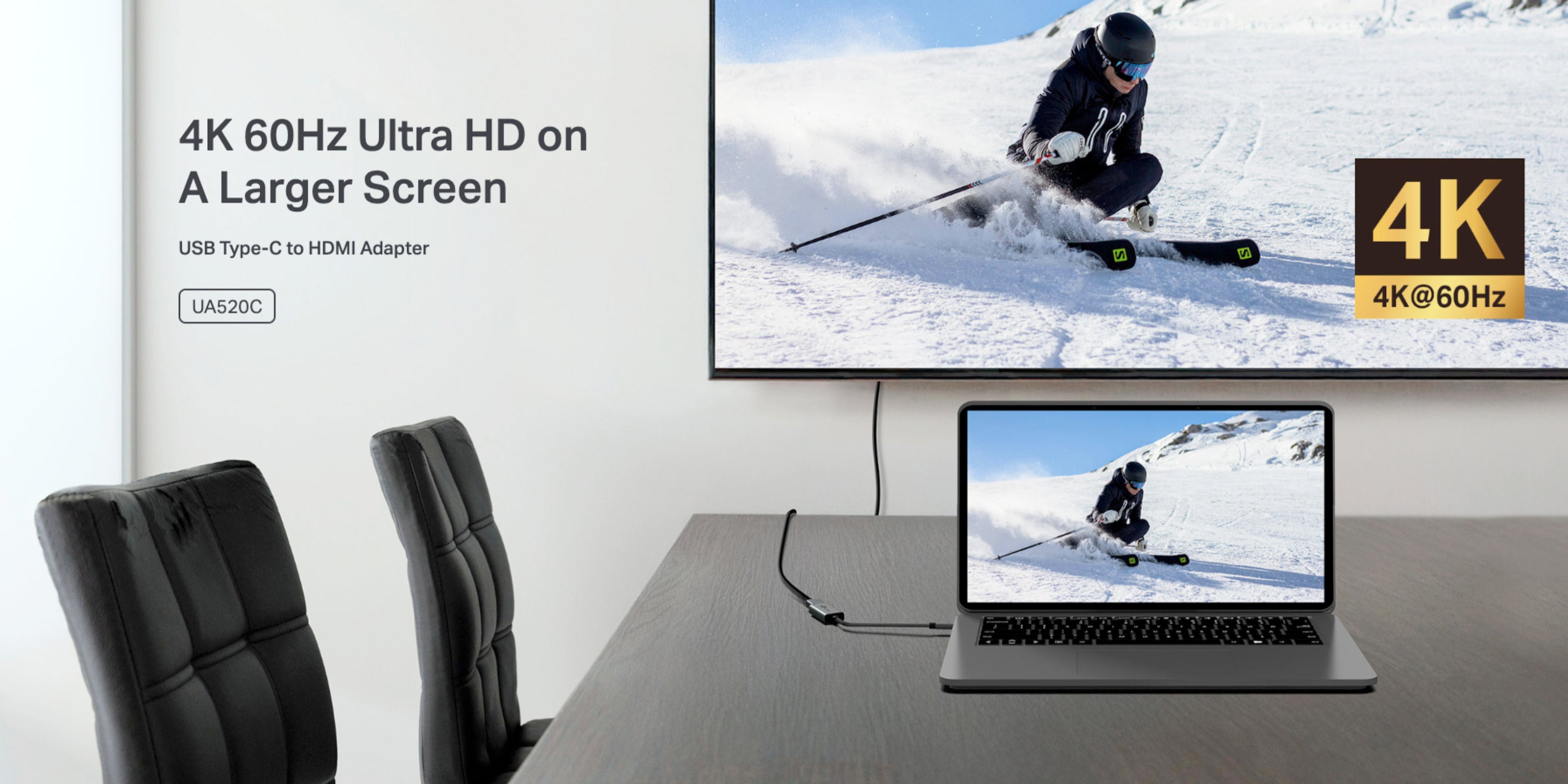 4K@60Hz USB Type-C to HDMI adapter with plug and play simplicity, universal compatibility for all devices, and durable, portable design.